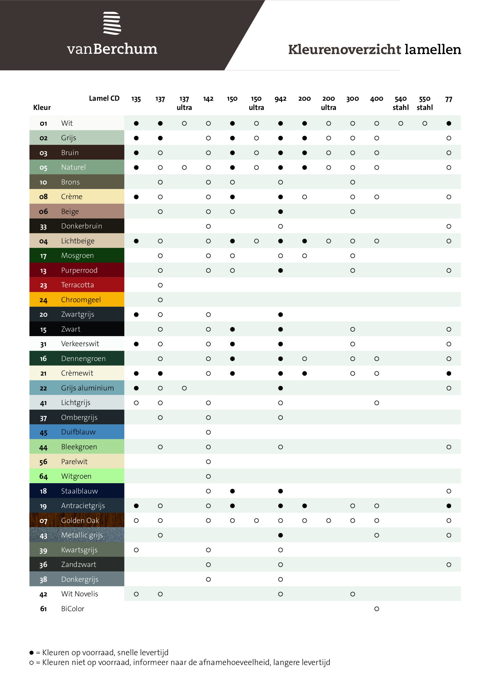 Alulux Kleuroverzicht lamellen